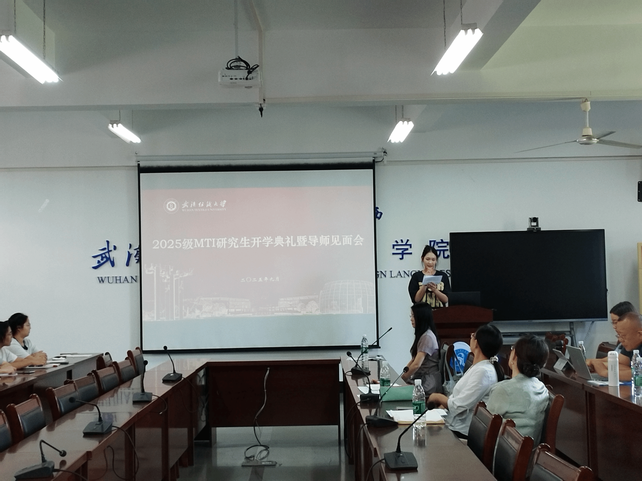 9月17日下午,2025级MTI研究生开学典礼暨导师见面会在崇文楼303会议室举行。bv伟德国际1946院长谭燕保、副院长刘方荣、副书记彭阳慈航、MTI教育中心管理团队、全体硕士生导师、2025级MTI研究生及2024级研究生代表参加典礼。会议由MTI教育中心主任刘珊主持。