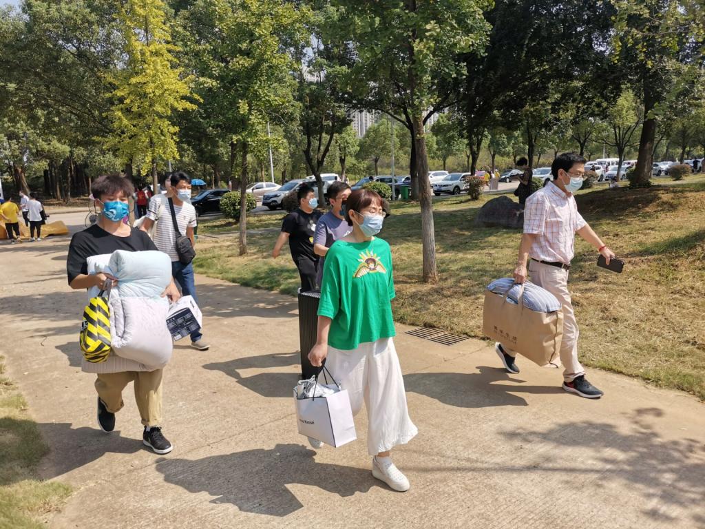 校园里的“守望者”——志愿者学生迎着太阳等候即将下车的新同学