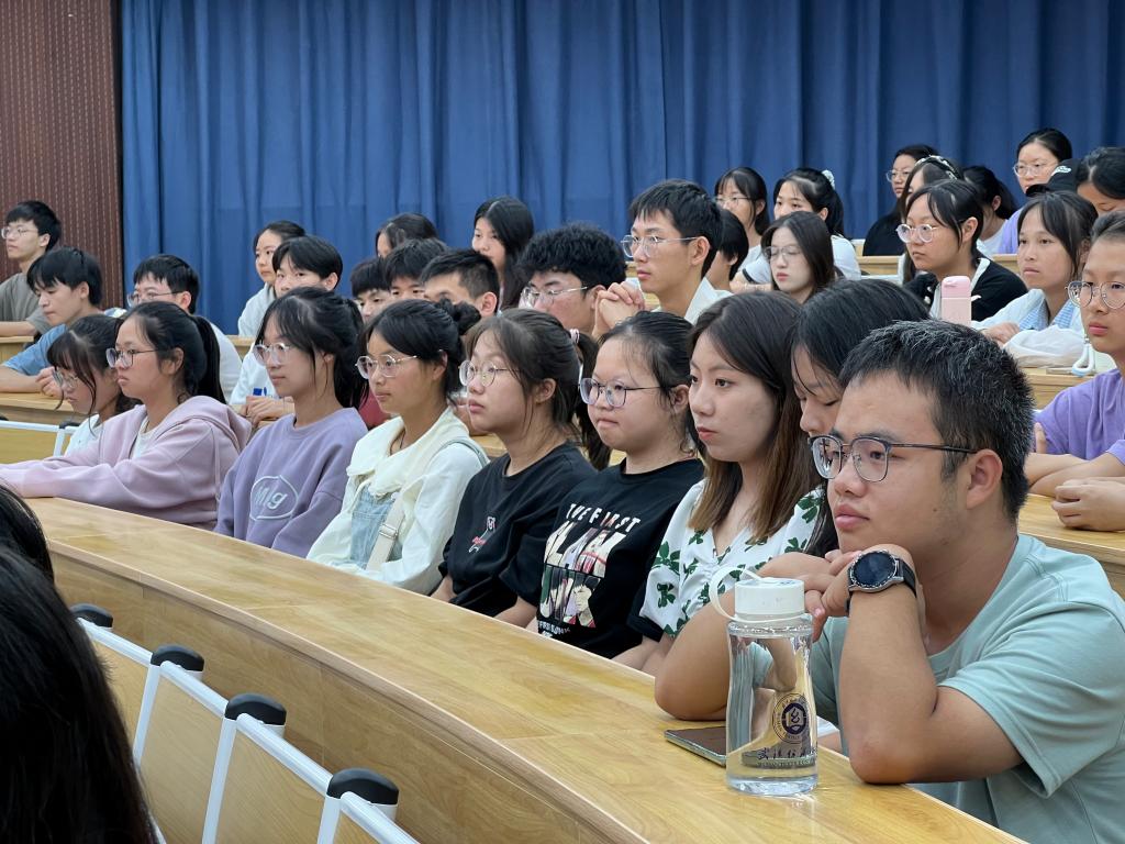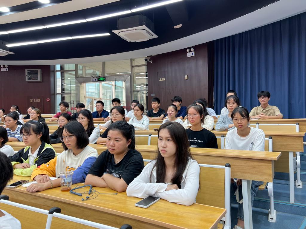 院长谭燕保以《I Have a Dream》为切入点,介绍了学院办学定位、学科特色和同学们的成长规划,鼓励新生:“你们每一个个体,不是统计数字的一百一十八分之一,而是父母的百分之百,我眼中的百分之百。”提出对新生的三点期望:像成年人一样奋斗、像成年人一样自律、像成年人一样期待。奋斗,要做到具有专业性;自律,要有“律商”,进行目标管理;期待,要接受挫折,并相信没有白受的苦,也要有成年人的“姿态感”。谭院长引用“穷则独善其身,达则兼济天下”要求新生同学要有家国情怀,充分发挥个人力量,做到“先天下之忧而忧”,将个人小我与国家大我融为一体。最后,谭院长祝福同学们“高开高走,梦想成真”,四年后的告别不留遗憾。