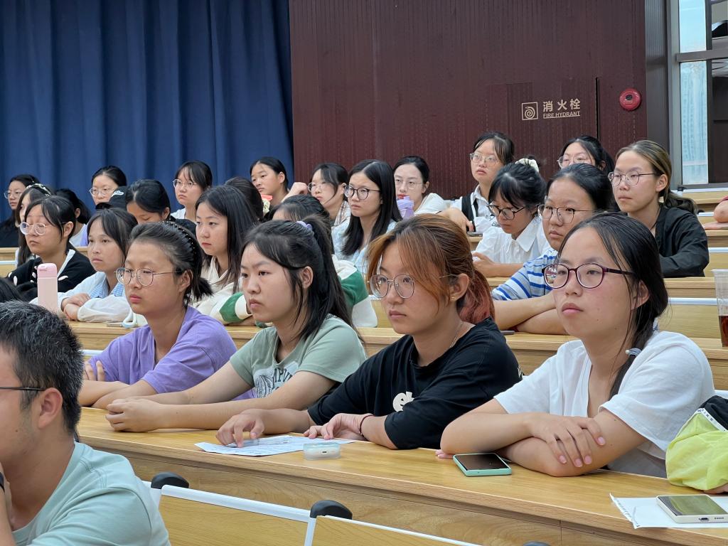 学院党委书记胡中原代表学院欢迎2023级新同学的到来,并寄语新生“心心相印,心想事成”。第一个“心”指同学们高考上岸的喜悦之心、探求知识的渴望之心、面对未来的憧憬之心,同时也要求新生要注意调节自身的喜悦,养成终身学习的品质;第二个“心”指老师的仁爱之心,全院教师会用心用情培养好每一位同学。最后勉励新生多读书,读好书,脚踏实地,勇毅前行。