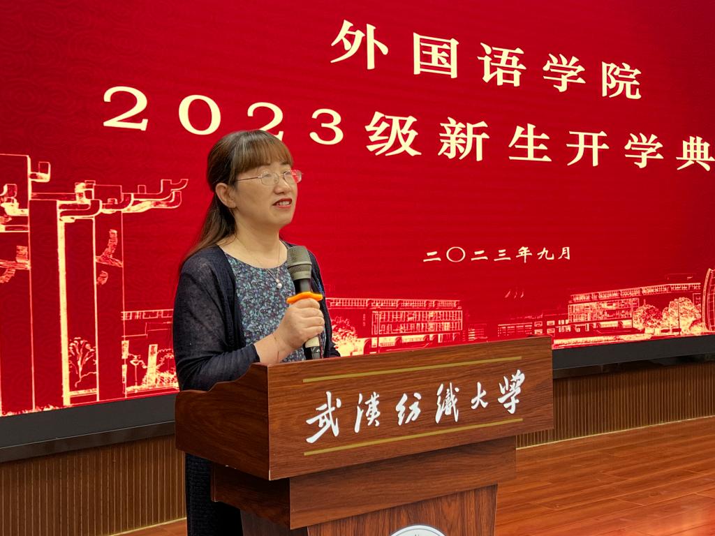 老生代表英语12101班宋美琪同学代表老生发言与新生共勉,结合自己暑期社会实践的经历,鼓励同学们建立自信,勇敢尝试,“向上向善,大气担当”。