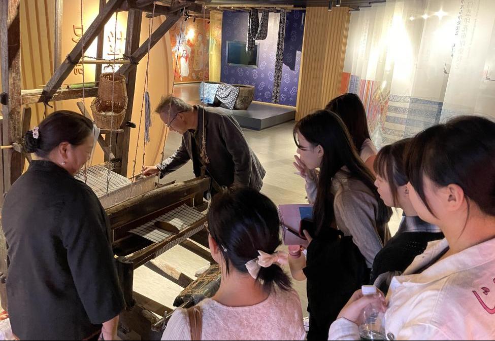 为培养学生爱国爱校情怀,助力纺织特色文化传播,10月20日下午伟德victor1946外语学院“服务地方非遗文化传播”大学生创新创业团队在柯群胜教授的带领下前往荆楚纺织非遗馆,亲身接触和体验纺织文化的魅力。