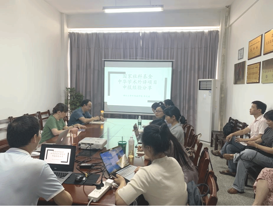 刘方荣结合自己申报中华学术外译项目的经历,从瞄准选题、搞定出版社、组建团队、反复读公告、敲定试译章节、填写申报书几个方面也分享了自己的申报经验。 她鼓励老师们一定要关注学院发展的重点方向,抓住机会、敢想敢干、努力挑战。