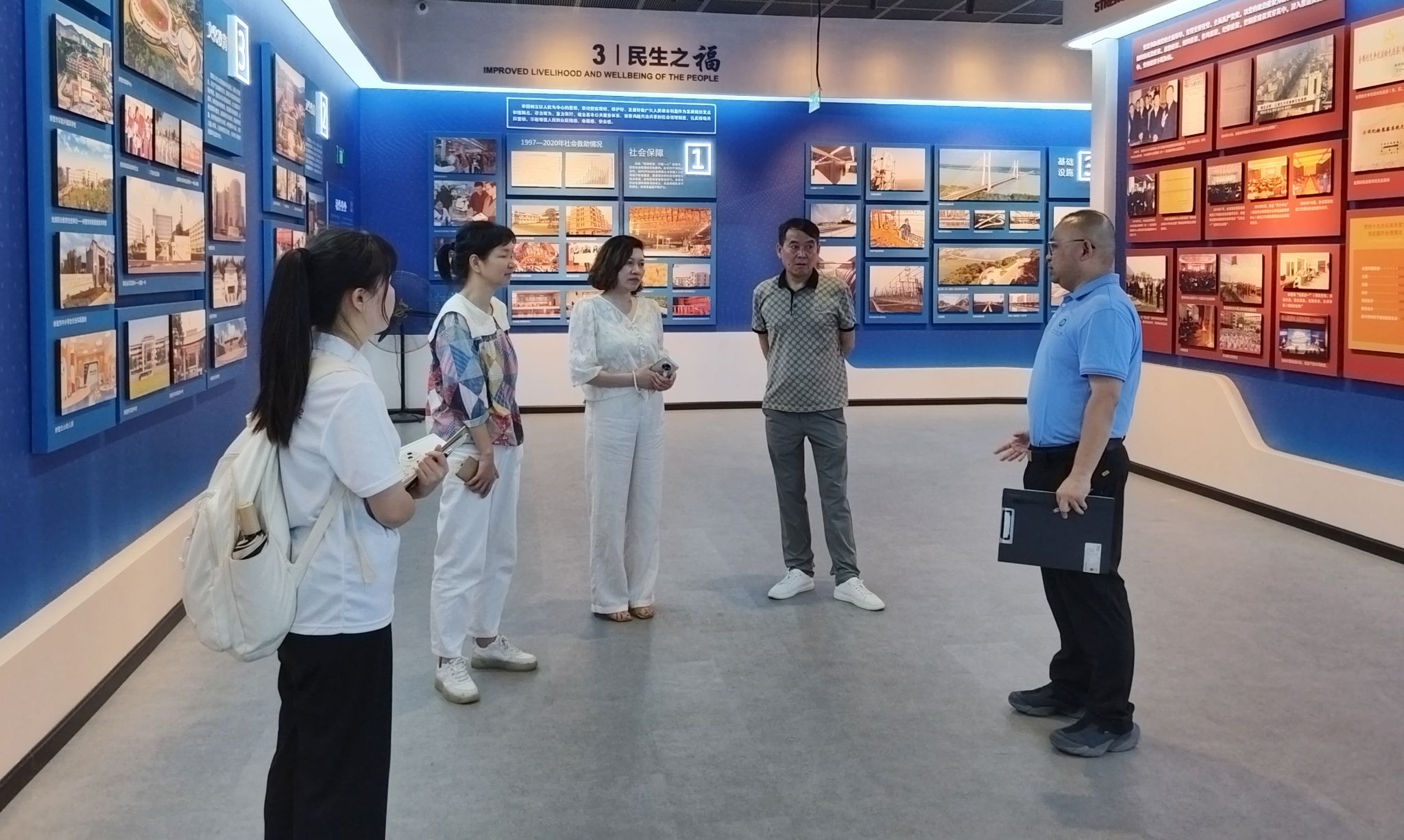 在赤壁市档案馆,周晓红副馆长和研究员余以文与实践团成员座谈,并带领他们参观了馆内关于赤壁历史文化及蒲纺三线建设的珍贵档案和展览。用详实的档案资料、丰富的历史文物、逼真的复原场景,运用新媒体技术,再现了赤壁的城市建设史和发展史,全方位、多视角展示赤壁经济社会发展和党的建设取得的成就。