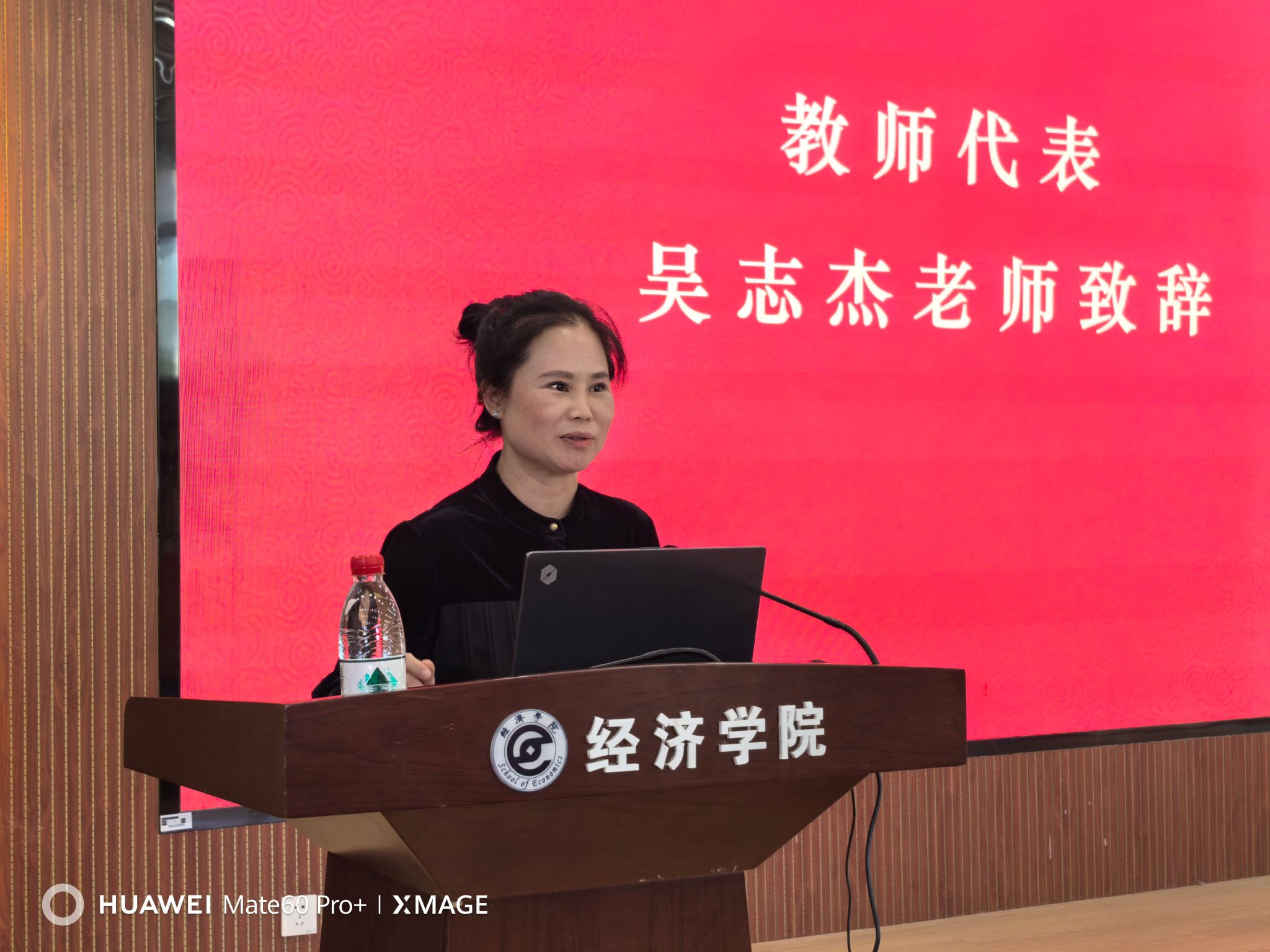 吴志杰作为教师代表发言,为新生们提出了三点建议。一是既来之则安之,鼓励同学们无论遇到什么困难,都要坚信苦难总比办法多,事缓则圆;二是向阳而生,鼓励同学们追求更优秀、更乐观积极的自己;三是向前看,做好规划,鼓励同学们养成终身学习的习惯,勉励他们做好人生规划和时间管理,在自由的时间里做到自律。