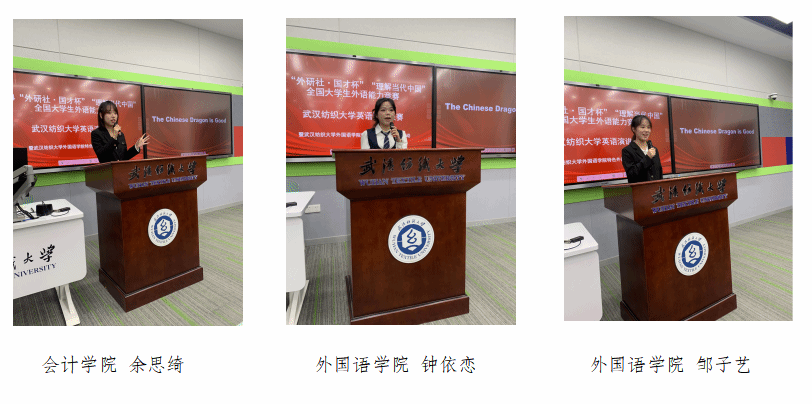 经过定题演讲和即兴演讲环节综合评定,最终评出一等奖3名、二等奖5名、三等奖7名,一等奖获得者为会计学院余思绮、bv伟德国际1946钟依恋、bv伟德国际1946邹子艺,这三名同学将代表学校参加省赛。