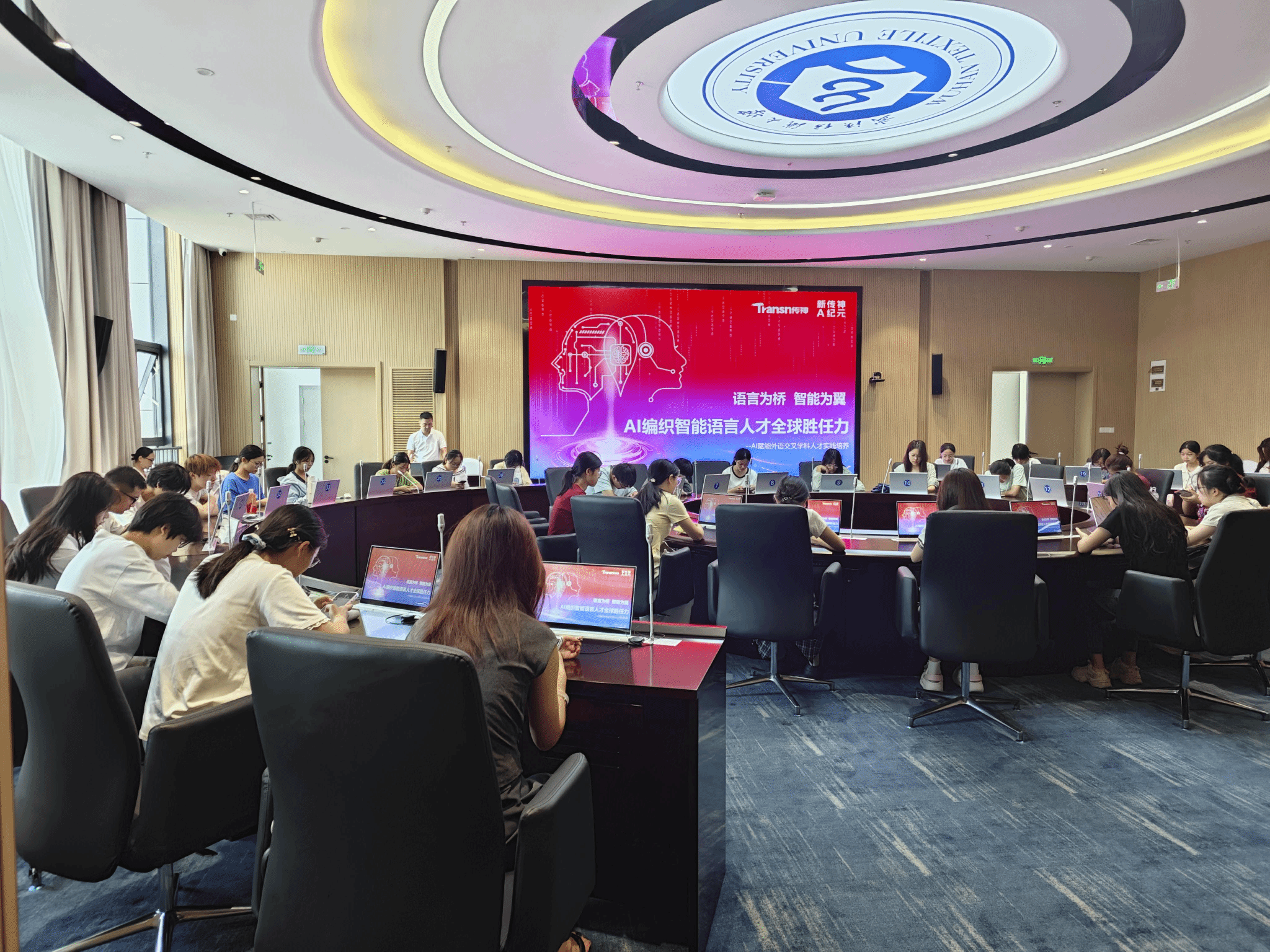 同声传译实验室建设项目于2024年8月启动,2025年9月完成设备安装调试。该同声传译实验室配备了先进的数字会议系统、沉浸式智慧口译实训系统及平台,设有2个标准译员间以及可容纳60人的代表席与观摩席,支持多达8个语种的同声传译。系统同时支持口译教学功能,覆盖译前准备、实战练习、口译技巧、拓展练习等教学环节。