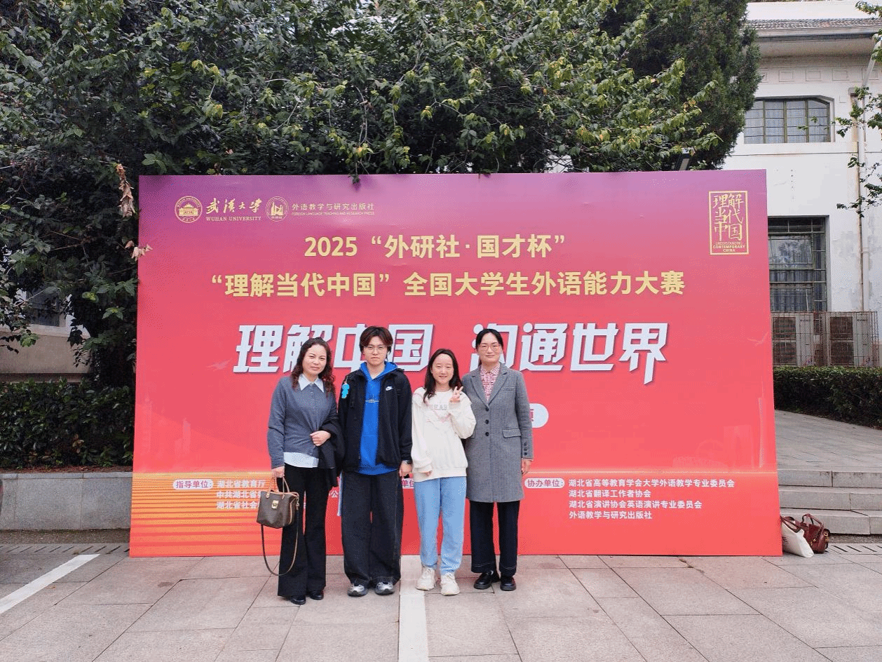 “外研社・国才杯”“理解当代中国” 全国大学生外语能力大赛是我国外语类赛事中规模最大、水平最高、影响最广的权威赛事之一,设有演讲、口译、笔译、综合能力、短视频五大分赛项,重点考察选手的外语综合应用能力与理解中国、沟通世界的实践能力。备赛期间,向蕊和张怡玲同学在陆雪芹、唐娴两位老师的指导下,精研时政文本特点,通过模拟实战训练提升翻译效率。指导教师团队针对赛题方向,量身定制训练方案,从术语规范、文化适配到逻辑重构,层层把关,助力学生突破瓶颈。