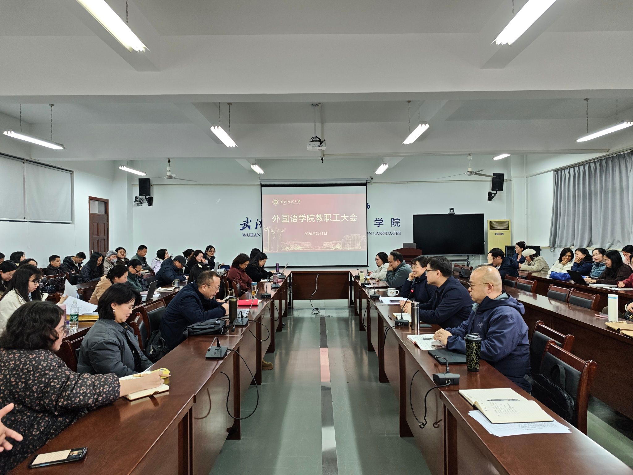 3月1日下午,bv伟德国际1946在阳光校区04-303会议室召开2026年新学期全体教职工大会暨工作部署会,全面传达学校新学期开学工作会议精神,系统总结寒假重点工作,科学部署全年核心任务。党委书记汪仕辉主持会议,学院全体教职工参加会议。