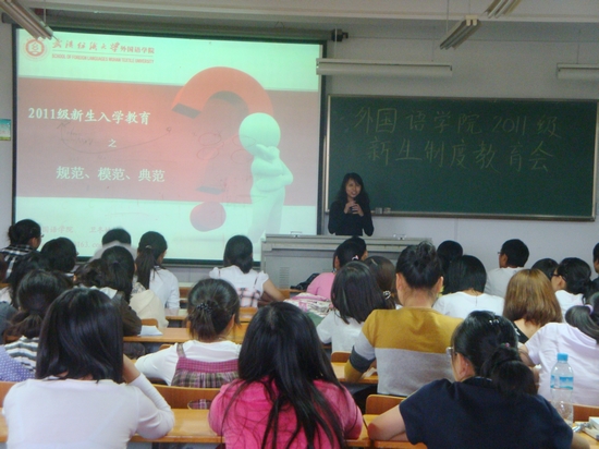 为使11级新生更好地适应大学生活,规范自身行为, 9月29日下午,bv伟德国际1946分党委副书记卫冬妹在07-221作了《规范、模范、典范》新生教育主题讲座,bv伟德国际19462011级全体新生聆听了讲座。讲座由新生辅导员陈新川主持。