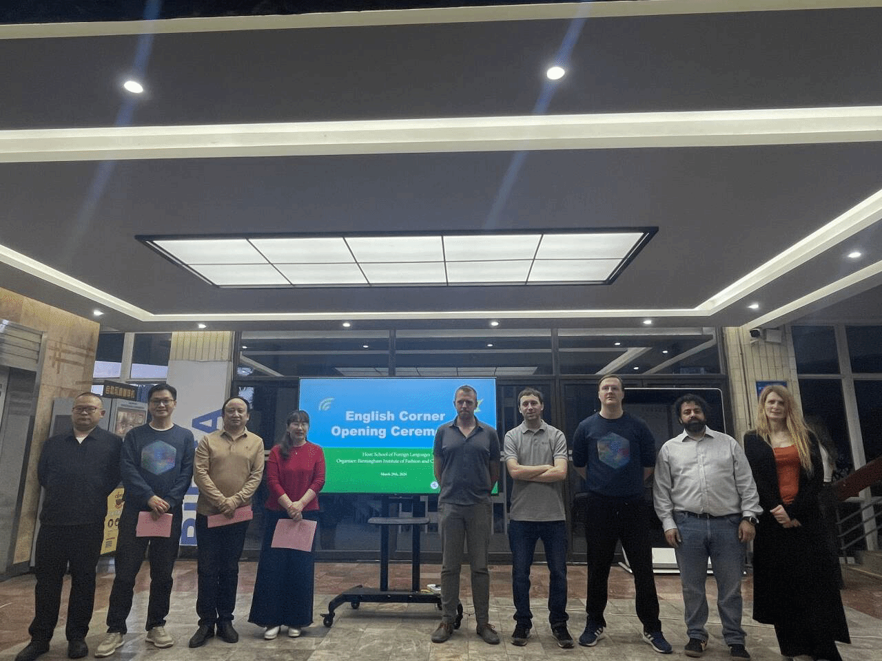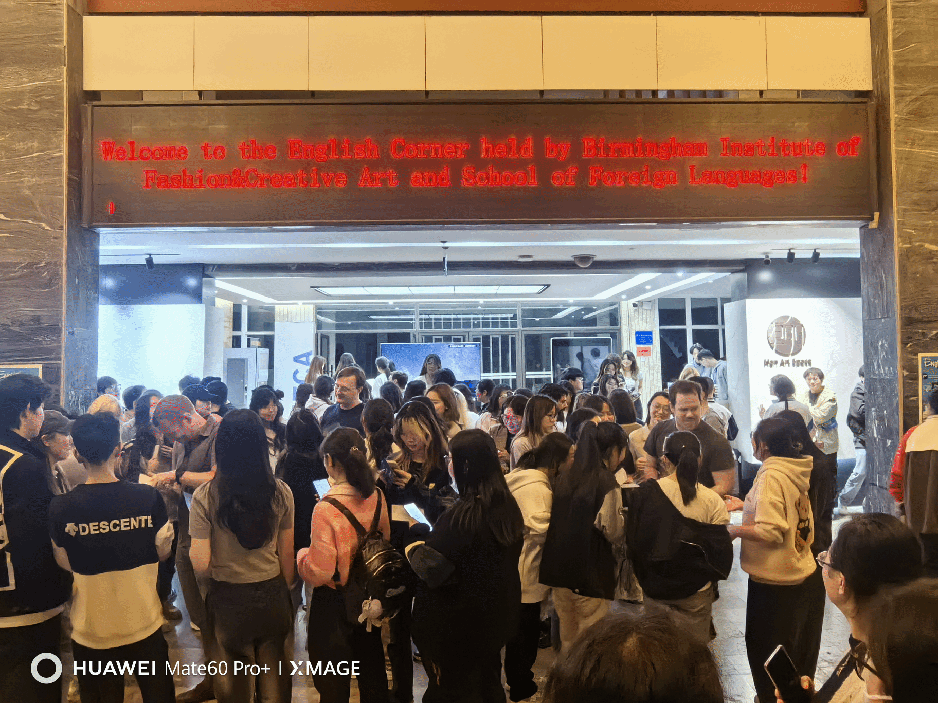 3月29日晚,由bv伟德国际1946与伯明翰时尚创意学院联合举办的外语文化节南湖校区“英语角”在尚美楼中庭举行。bv伟德国际1946院长谭燕保、副院长罗绮伦、党委副书记彭阳慈航,伯明翰时尚创意学院党委副书记李斗明、伯明翰城市大学语言外教Jack、Ben、Joe,专业外教Kira、Tychonas,以及bv伟德国际1946伯明翰项目组全体老师出席。此次“英语角”是第十八届外语文化节的首场活动。