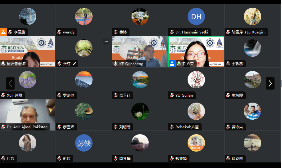 4月22日晚,第二届跨学科语言教学国际学术会议bv伟德国际1946教师分论坛通过腾讯会议召开。第二届跨学科语言教学国际学术会议(IICLT2024)由伟德victor1946和巴基斯坦GIFT大学共同主办。本次分论坛由副院长刘方荣主持,学院全体教师参加,GIFT大学艺术和社会科学学院院长Dr. Asir Ajmal 和教师代表Dr. Shahid Qureshi 也通过腾讯会议参加了论坛。