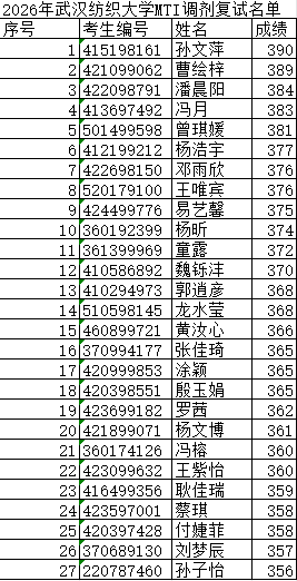 2026年bv伟德国际1946MTI调剂复试名单公示