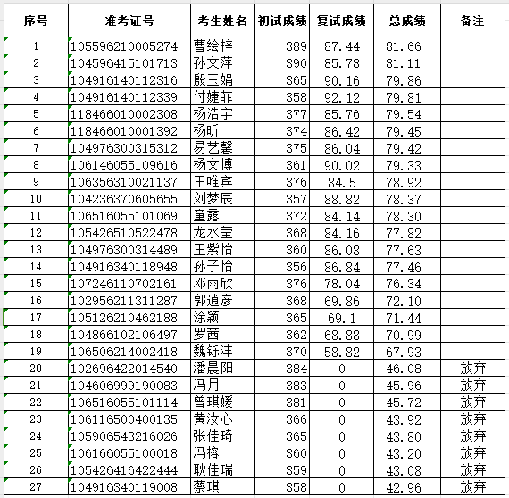 bv伟德国际19462026年硕士研究生招生调剂复试成绩公示