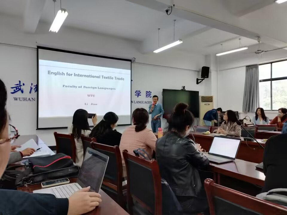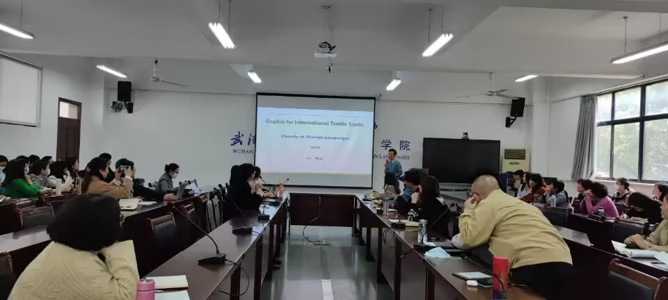 bv伟德国际1946商务英语系于4月27日下午在04-303会议室开展了黎健老师《纺织贸易英语》课程的现场教学观摩活动,bv伟德国际1946全体教师参与了本次教研活动。