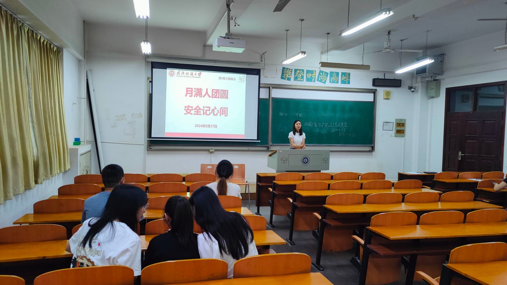 9月17日晚,bv伟德国际1946全体辅导员、班主任通过线下方式,深入各班级组织召开晚点名,开展“月满人团圆,安全记心间”主题班会。学院全体本科生、研究生参加班会。此次班会旨在学习教育家精神,强调杜绝学术不端行为,并提醒学生注意校内消防安全。