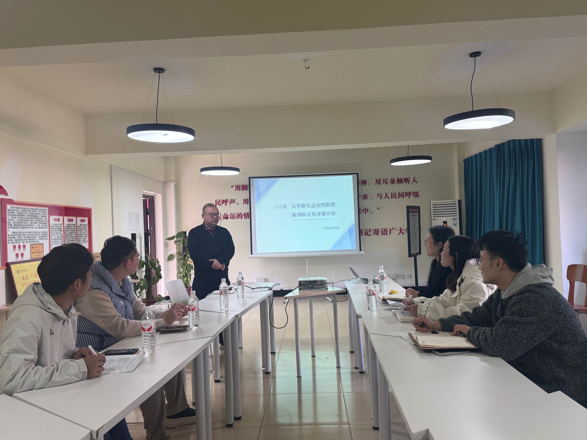 随后,5 位辅导员代表结合工作实践展开主题分享。bv伟德国际1946石亚楠老师以《看见 “沉默的他”:农村籍大学新生自我认同的建构》为题,剖析农村籍新生融入困境,分享通过个性化关注与正向引导建立学生积极身份认知的方法;电子与电气工程学院冉晨老师围绕《新生适应性困境中的非典型信号识别与回应》,提醒辅导员关注 “隐性适应问题”,提升信号捕捉与及时介入能力;伯明翰时尚创意学院甘新敏老师以《心理特殊新生适应期案例分析与家校协同对策》为核心,强调家校常态化沟通对心理特殊新生平稳过渡的关键作用;数学与统计学院曾琦老师在《大学新生的社会支持与学校适应问题探析》中,从社会支持系统构建角度,提出辅导员助力新生搭建人际网络、获取资源的具体路径;资源与环境学院孟俊老师则以《从 “谈心” 到 “赋能”:新生专业迷茫的破局之钥》为题,分享通过深度谈心与赋能指导,帮助新生厘清专业方向、化解选择困惑的实践经验。