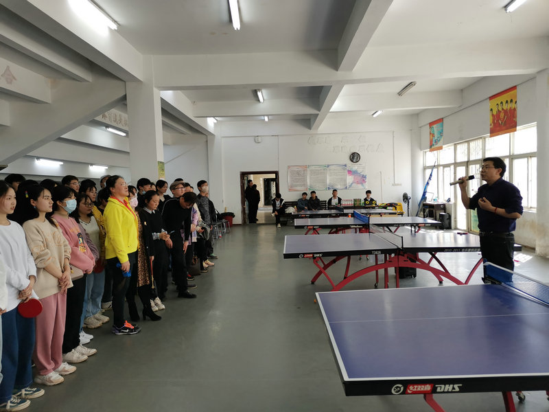 本次活动旨在通过乒乓球运动的比拼竞技,增进学院师生在球技和情感上的交流,倡导热爱运动、积极向上、健康阳光的青春正能量。参赛师生到达比赛地点后,学院党委书记胡中原作了开场致辞,他表示,身体是革命的本钱,健康是人生的财富,希望师生积极参加体育运动,以更加充沛的精气神投入到学习工作生活当中。随后,负责人开始介绍比赛规则,并通过抽签分成三组,进行单循环比赛,以胜负积分排名决胜。