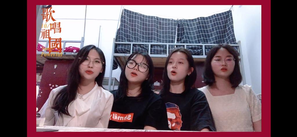 学院各年级寝室纷纷响应,大家都用心拍摄、投稿,积极地一展歌喉,每一个视频中的笑脸都展现出了开朗自信的外院面貌,同学们的歌声自然生动。
