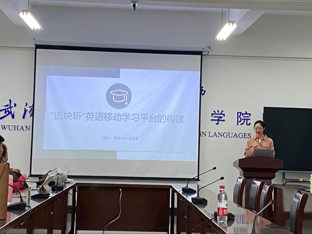 第二位进行展示的是来自英语专业的方佳宝同学,她的展示主题是《“语块斩”英语移动学习平台的构建》。作为一名英语专业学生,方佳宝同学在了解到本专业同学在专业性知识学习的困难点后,对本专业学生如何系统有效学习进行了深度思考与构思,并提出了“语块斩”英语移动学习平台的构建,为英语专业学生学习提供了新思路新方法。