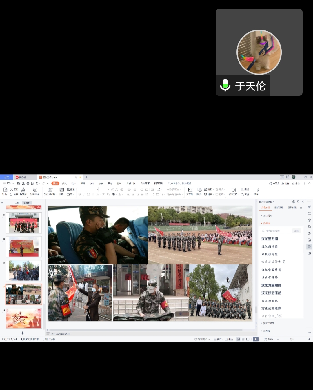 为进一步让同学们了解大学生征兵入伍的政策,鼓励学生积极应征入伍,多经历、多锻炼,11月27日18:00,bv伟德国际1946于腾讯会议召开了征兵入伍宣传朋辈领航,本次朋辈领航邀请了2018年退伍大学生于天伦主讲,辅导员甘新敏主持会议,全体同学参与此次会议。