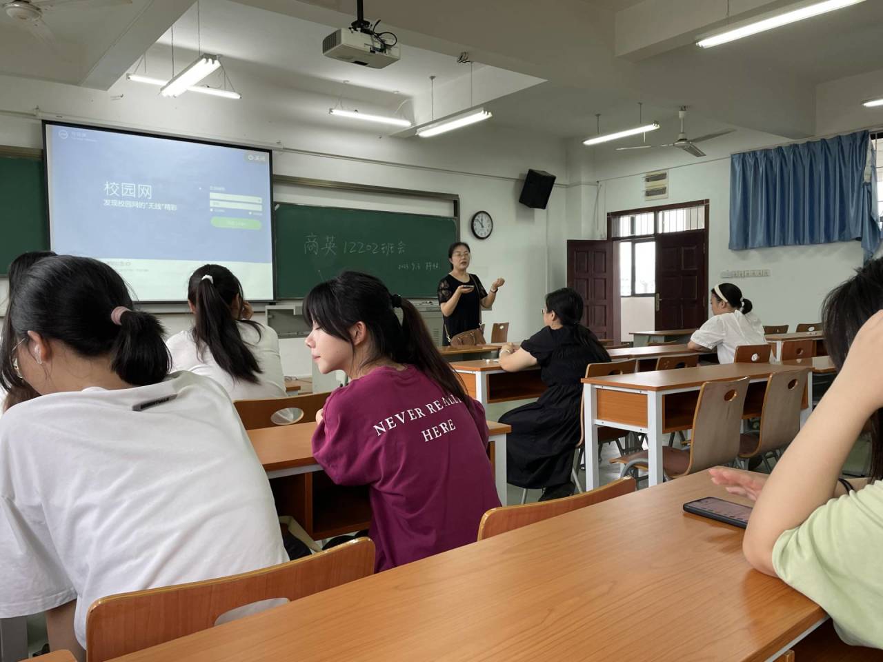 上课声响,喜迎学生到,安全记心间。班主任以注意人身安全防范,遵守宿舍管理规定,履行离校请假手续等方面讲述。其中,以最近高热度电影《孤注一掷》来告诫学生们警惕电信诈骗;还有多发的溺水事故也是反复与同学们提起。除此之外,班主任还贴心地送上一份心理调适小锦囊,让同学通过端正心态,调整生物钟,积极锻炼等方法更快地重新融入到大学生活,多关注自身与他人的心理健康度过一个快乐的学校生活。在学习方面,班主任也提到要导向型地学习,确认自己的近期目标:专四的规划,拓展第二专业,发展综合能力多参加比赛等,以及自己的长远规划:毕业之际是出国,考研还是工作等。